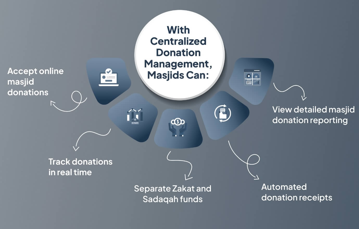Centralized donation management helps improve donor engagement for mosques by providing better communication and transparency.