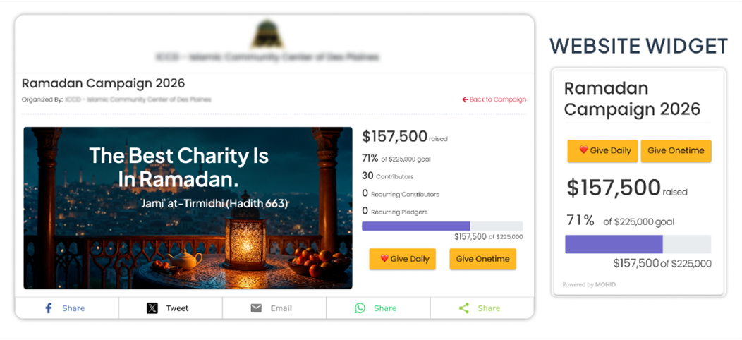 Ramadan fundraising campaigns are successful when stories touch hearts. MOHID’s Masjid donation platform allows masjids to: