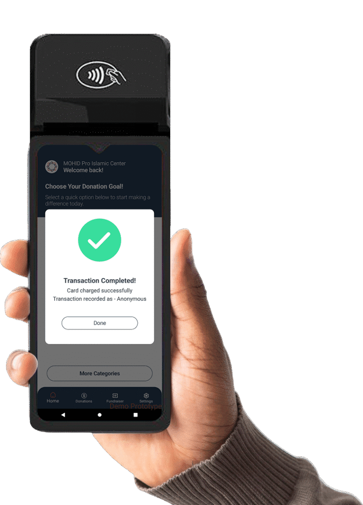 - The MOHID EMV chip reader enables quick payments, making it easier for donors to contribute and increasing donations.