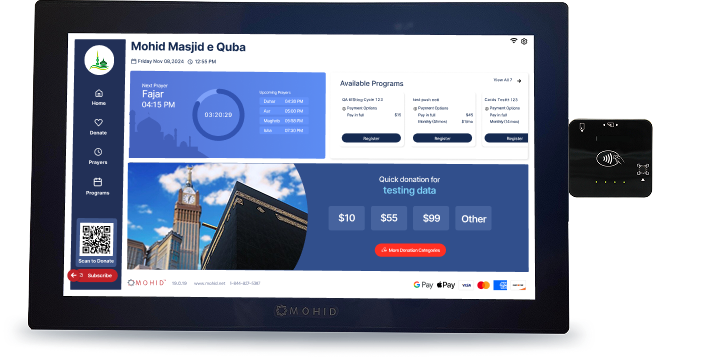 This newly developed software, MOHID, specifically designed for Masajid, has cut down on labor costs, improved revenue through kiosks and low transaction fees, and streamlined our operations. We appreciate the timely support provided by the MOHID team.